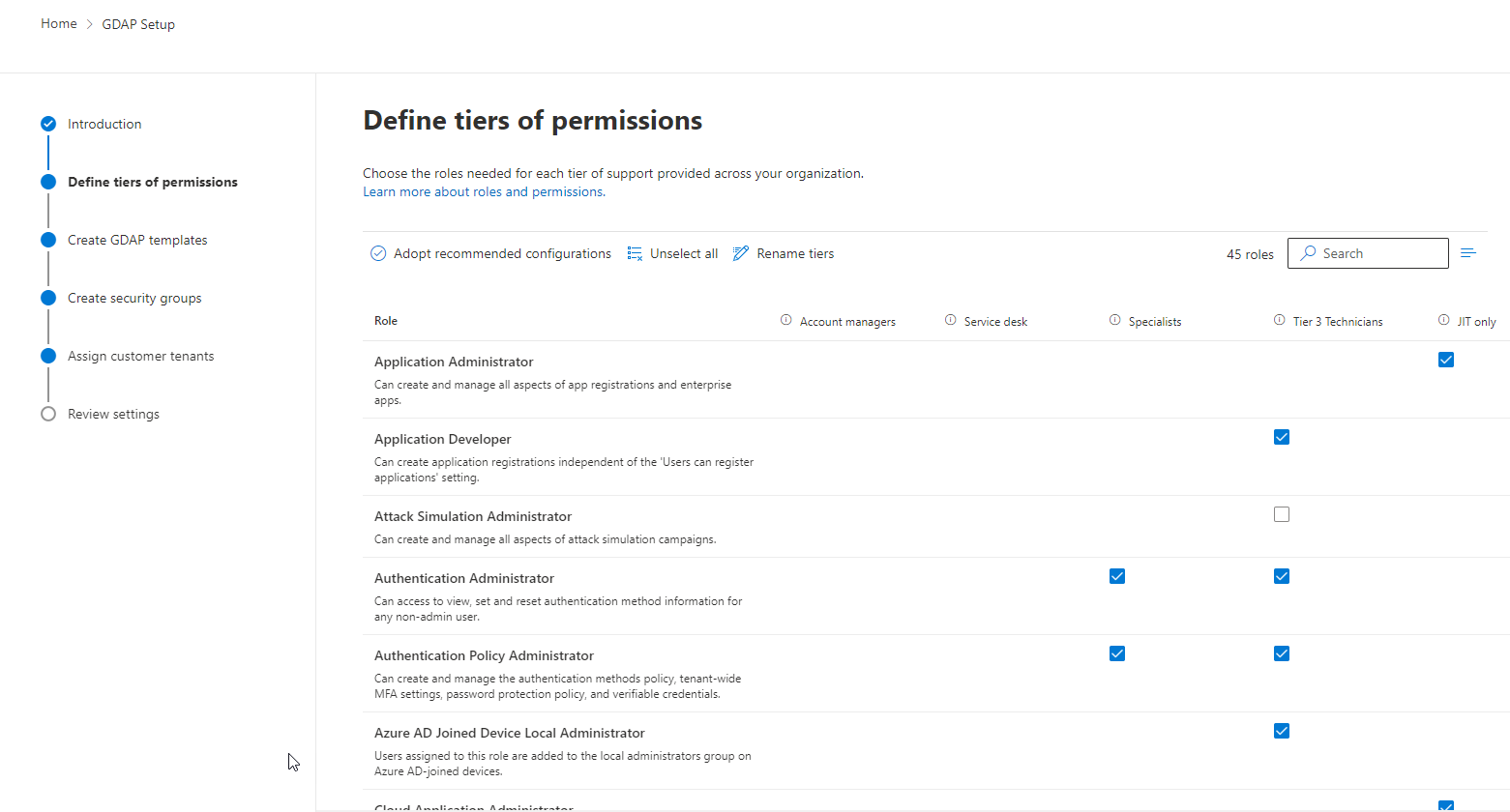 In the wizard, you get predefined tiers that are recommendations on partitioning out the various Azure AD roles within your organization. I believe this is one of the best parts of the tool. You are able to rename the tiers to better match your organization and unselect some of the recommendations if it is an Azure AD role you are not going to use.