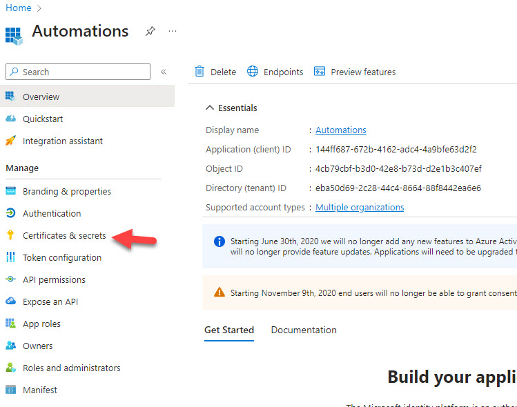 Note If you already have an application registration established, you can skip many of these steps. We can leverage a pre-existing application. Its important to ensure that your application registration still has the correct permissions.