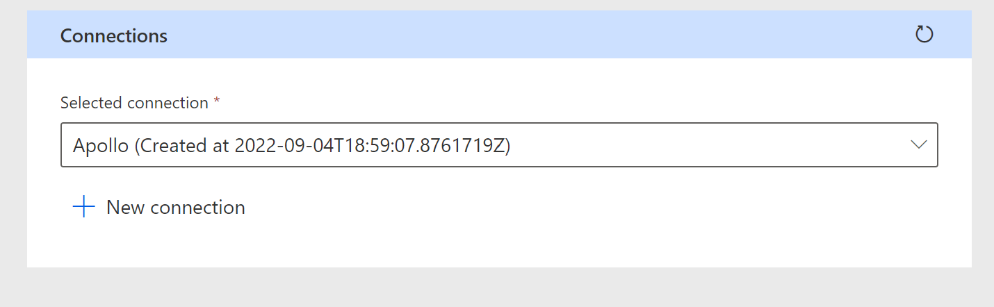 6. After the connection is entered you will be redirected back to the Test page. Here you can click on the refresh button to generate the connection you just created.