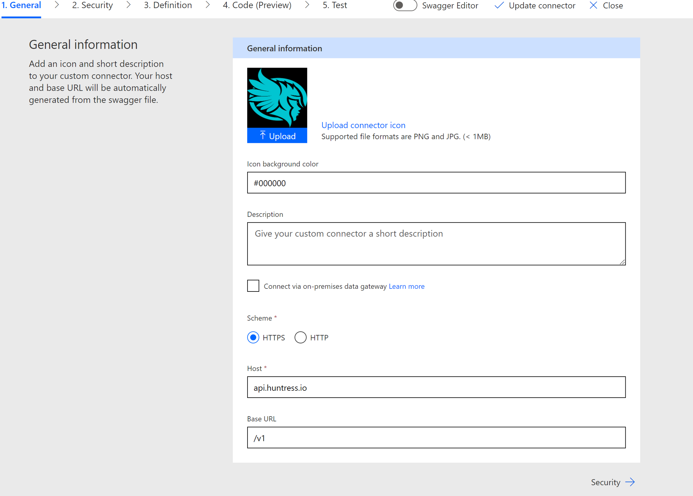 1. Go to https://make.powerautomate.com/ > Data>Custom Connectors>+New Custom Connector>Create from blank