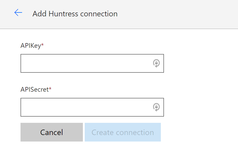 5. Go to the Test tab, click on + New Connection. Here you will enter your Huntress API Key and Secret